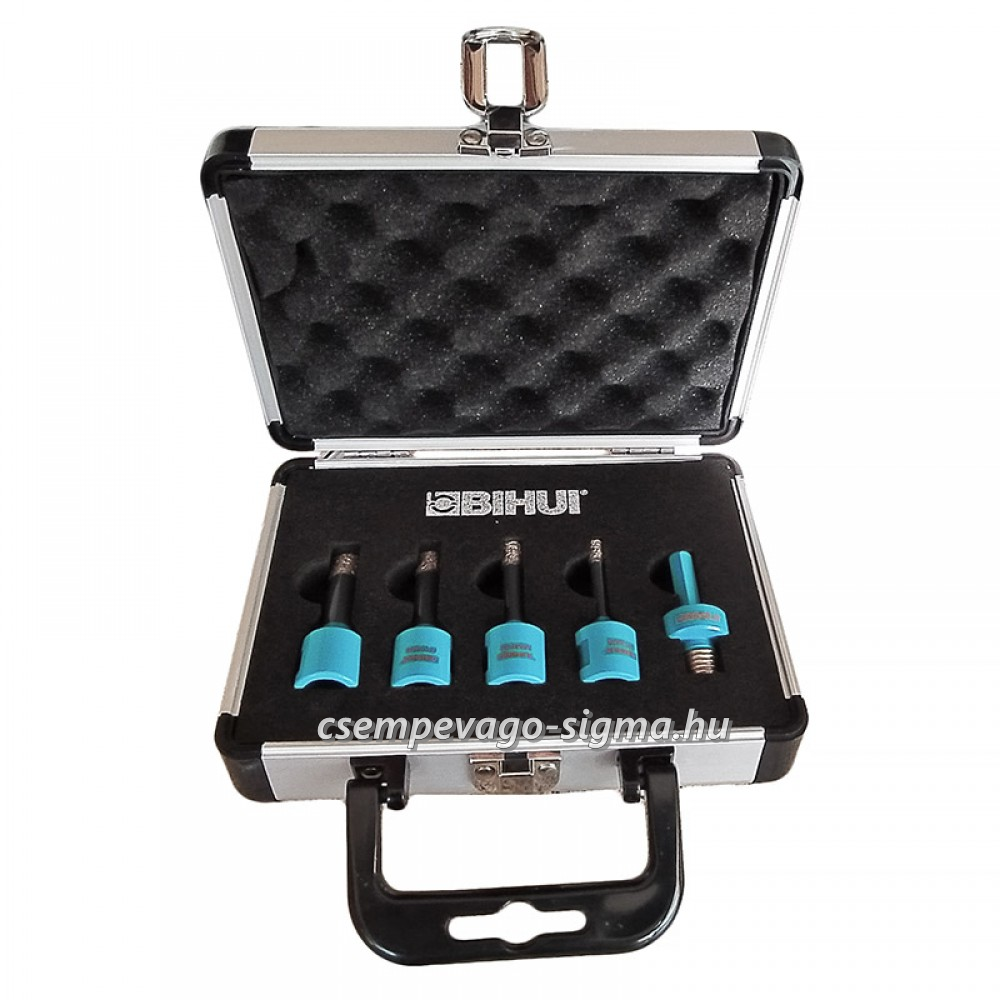 A készletben található fúrók méretei: 6x64, 8x64, 10x64, 12x64 mm, adapter