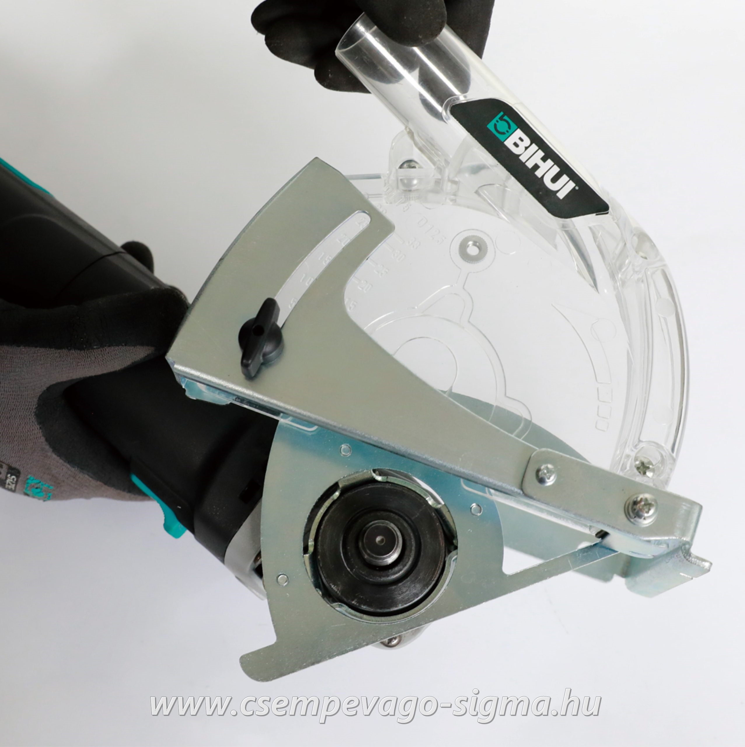Tartós átlátszó ABS műanyagból készült a vágásvonal jó láthatósága érdekében. Lehetővé teszi, hogy pormentesen dolgozzon 115 mm-es vagy 125 mm-es tárcsaátmérőjű csiszológépekkel.