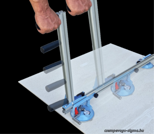 Az Ergo-Lift csempe mozgatására és lerakására szolgáló berendezés 60x60cm-től 180x80cm-ig terjedő méretekkel.